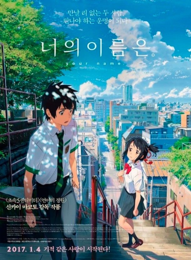 따스한 봄날, 첫사랑의 두근거림과 운명적인 사랑을 느끼고 싶다면 영화 너의 이름은을 추천합니다.